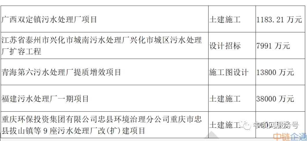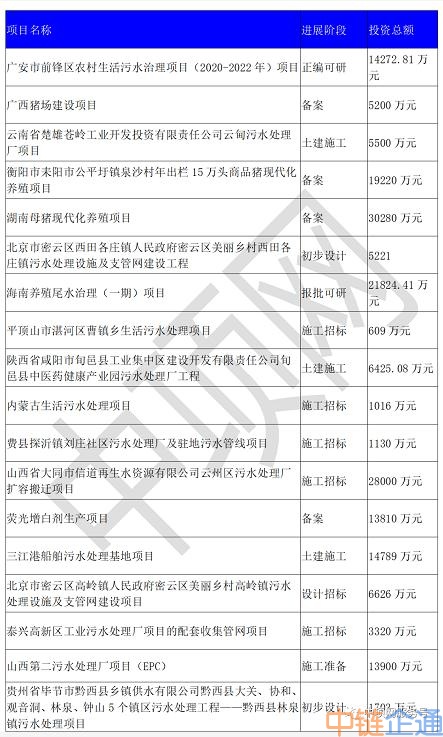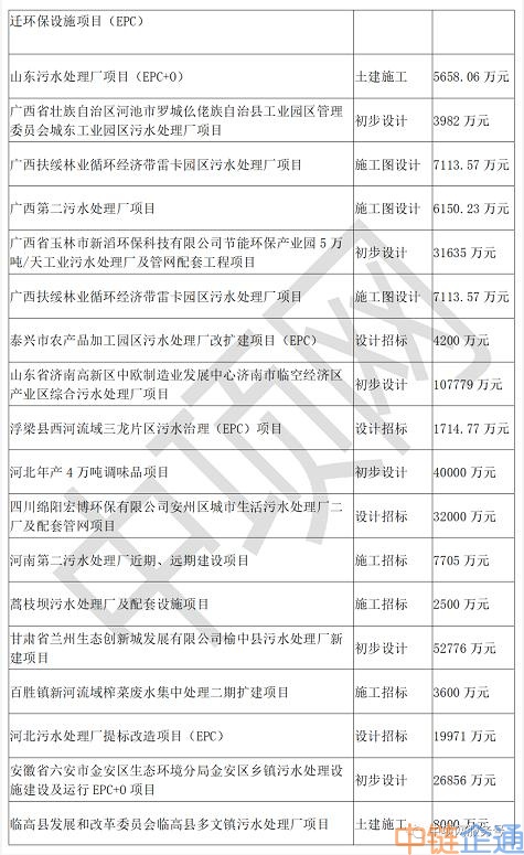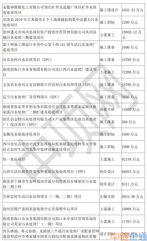 中项网权威发布11月份生活污水+工业污水项目