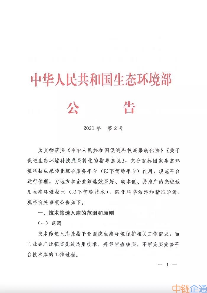 原标题:关于推进国家生态环境科技成果转化综合服务平台技术筛选入库工作的公告
