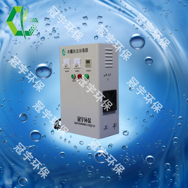 水箱自洁消毒器利用氧气或空气通过高频高压电场转化为臭氧,臭氧充分与水混合,以达到杀灭水中病毒、细菌、微生物等有害物质。
