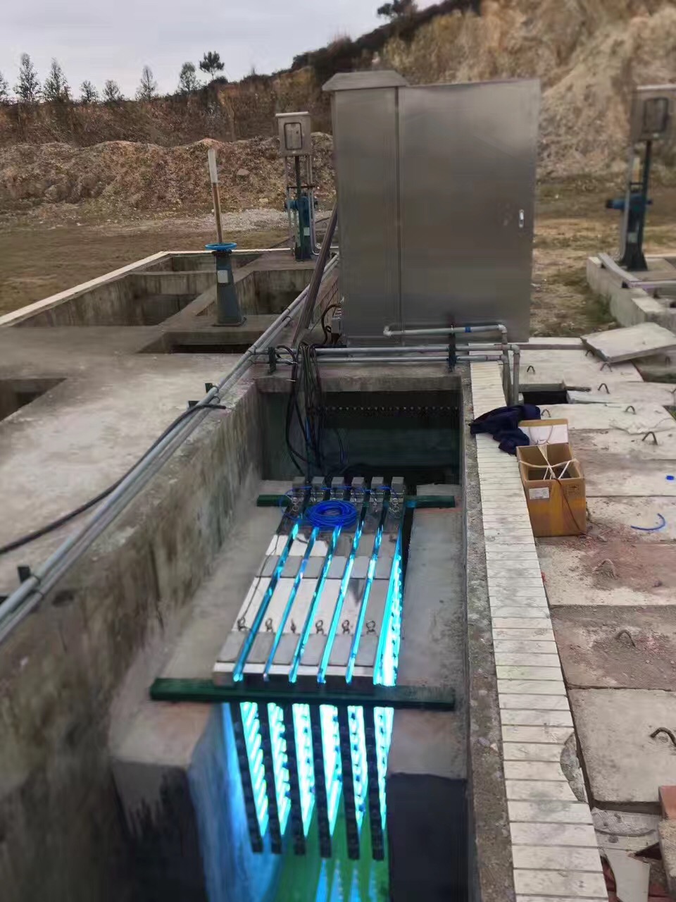 紫外探头:紫外探头安装水下,其外壳采用316L不锈钢制造,每组紫外消毒模块配备一个紫外探头,以传输紫外光强数据。紫外探头可监测由于污水透射率变化以及灯管寿命老化而造成的紫外输出强度的变化。