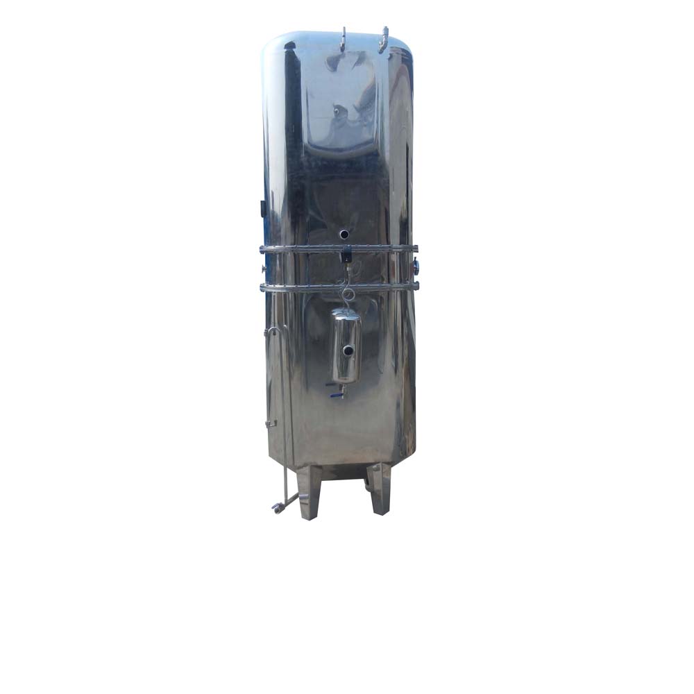 引进锅炉蒸汽,通过汽液分离器,将水和杂质自排污阀排出,纯净蒸汽进入蒸发管,使蒸馏器内的一次蒸馏水蒸发成蒸汽,经隔膜片过滤进入螺旋式冷凝管冷却成蒸馏水自出口流出。蒸发管内蒸汽放出热量后,自身液化,经阻汽阀由补水桶注入蒸发锅补充蒸发水。