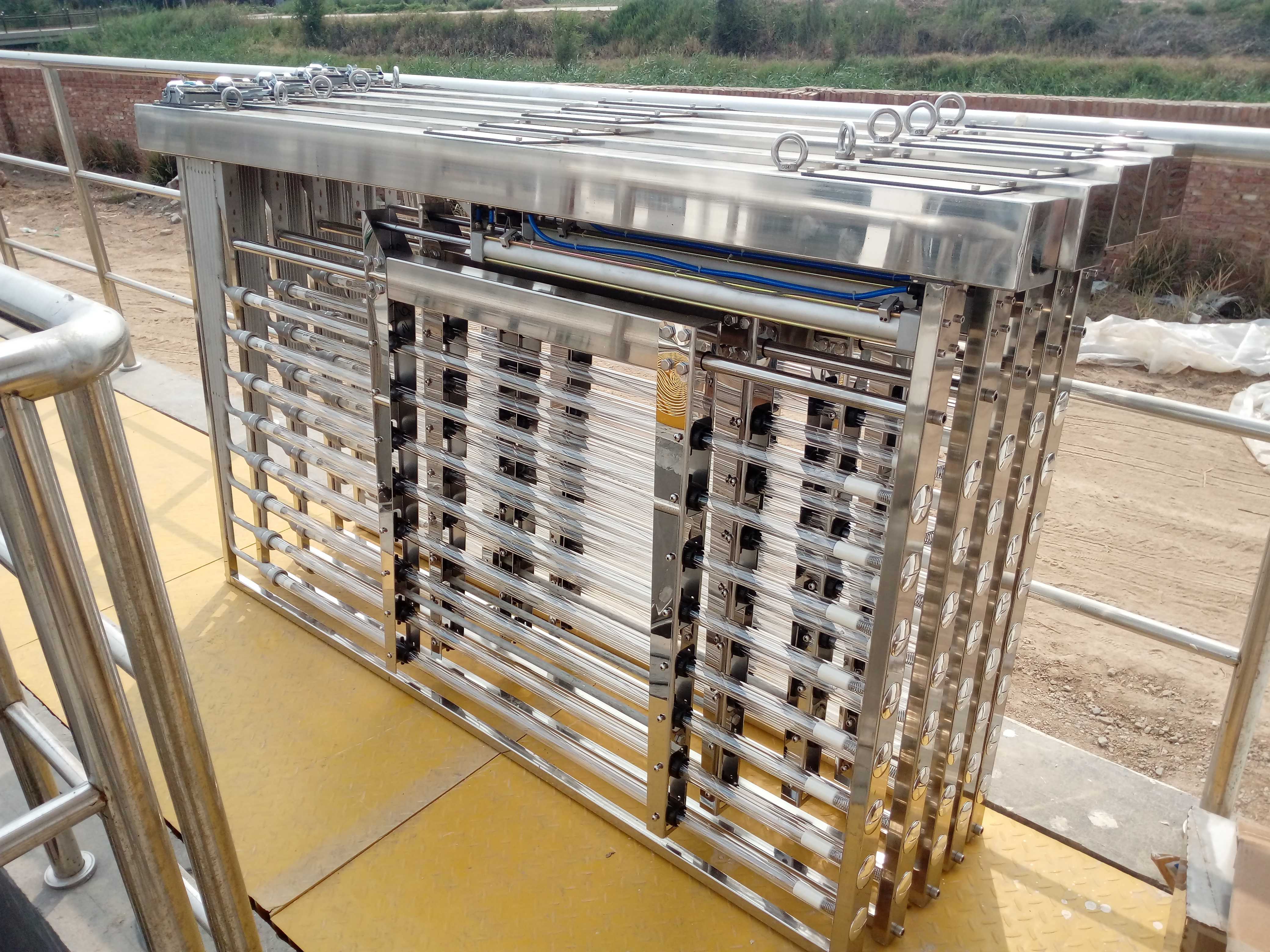 紫外模块采用为本产品量身定制生产的管材,主配部件均采用激光下料、开孔、切割,产品具有统一性、一致性、互换性、美观性、精度高、误差小。产品主梁、清洗系统、线路保护系统均采用独立模块化生产、格式化、组合式结构,安装方便快捷高效、省时、省力、省人工