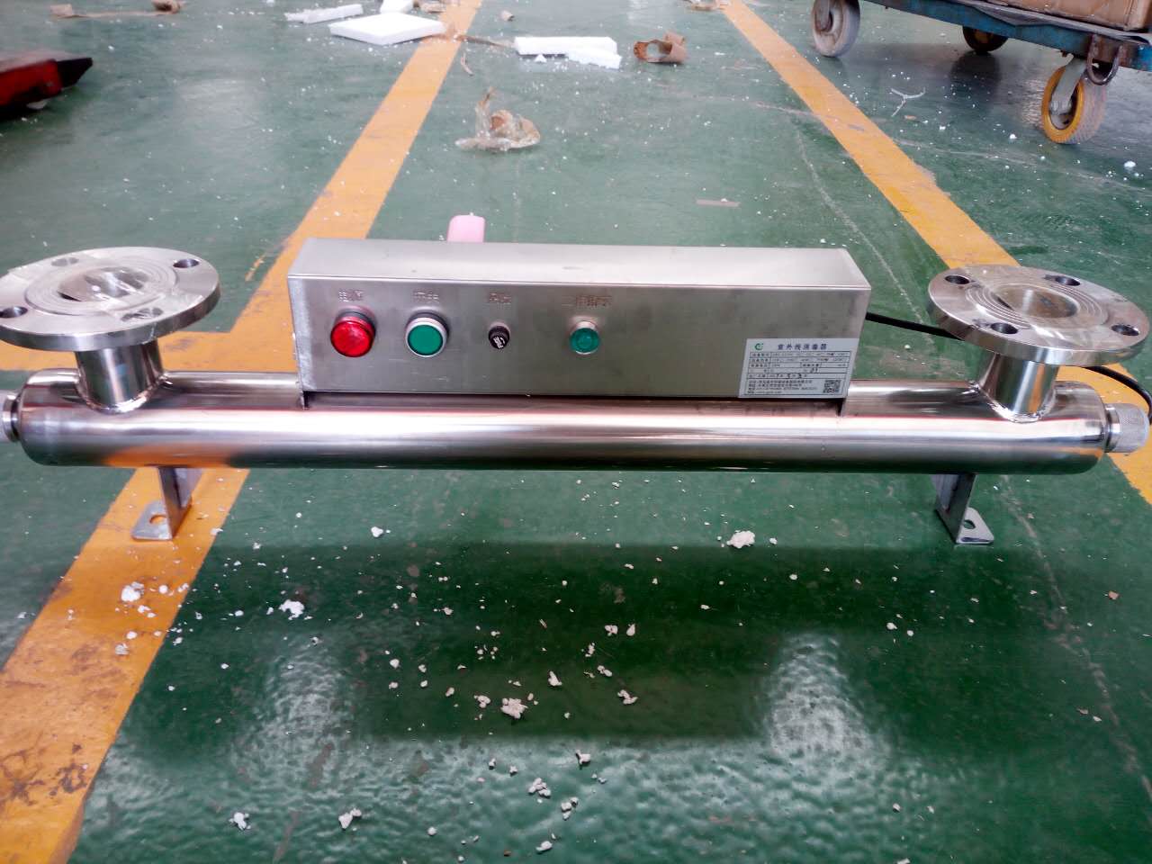 本设备为过流式饮水消毒紫外线消毒器,采用领先水平的高强度无臭紫外线杀菌灯,简体内壁经过特殊处理的食品级304不锈钢,使经过预处理的水流过筒体时受到波长253.7nm紫外线足够量的照射,具有良好的杀菌效果,由于他不改变水的物理、化学性质,所以在饮用水、食品、饮料、化工、电子、医药、污水、中水是不可缺少的 理想饮水消毒紫外线消毒器。