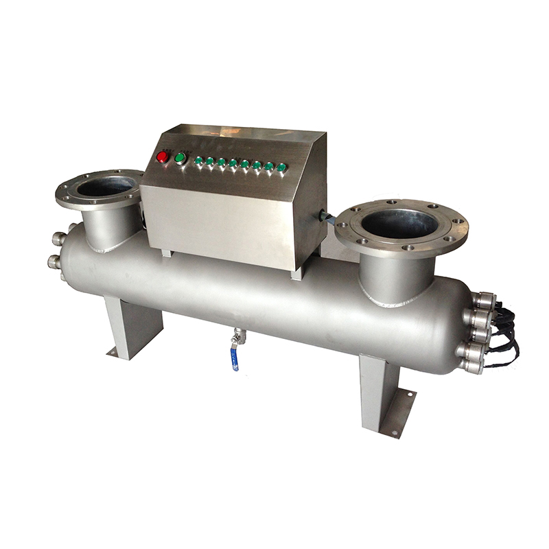 本设备为过流式饮水消毒紫外线消毒器,采用高强度无臭紫外线杀菌灯,简体内壁经过特殊处理的食品级304不锈钢,使经过预处理的水流过筒体时受到波长253.7nm紫外线足够量的照射,具有良好的杀菌效果,由于他不改变水的物理、化学性质,所以在饮用水、食品、饮料、化工、电子、医药、污水、中水是不可缺少的饮水消毒紫外线消毒器。