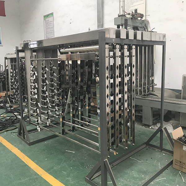 该设计优点:模块所用材质均为耐腐蚀的316L、304不锈钢,整个系统中灯管插座、供电插座及紫外灯电线均封闭在紫外灯模块组件内,不会暴露于污水和紫外光水中。整个模块支架为316、304不锈钢制造并安装在明渠的污水上方,每个模块单独设置,并无需紧固地悬挂在明渠内污水的上方,因此在更换灯管或石英套管时,每个模块能单独被吊起且不影响其他模块。