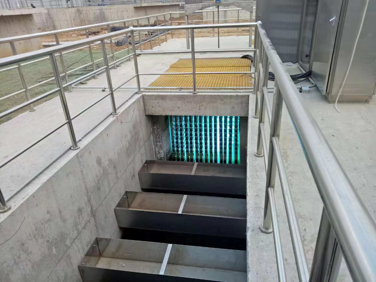 开放式污水消毒技术系统采用紫外C消毒技术,以特殊的工艺设计、高效率、高强度、长寿命的紫外C灯管,性能可靠的电子镇流器以及电控系统为基础,利用紫外C波段(T254nm)紫外光对细菌、病毒等致病微生物具有的高效、广谱杀灭能力,达到水净化和消毒的目的。
