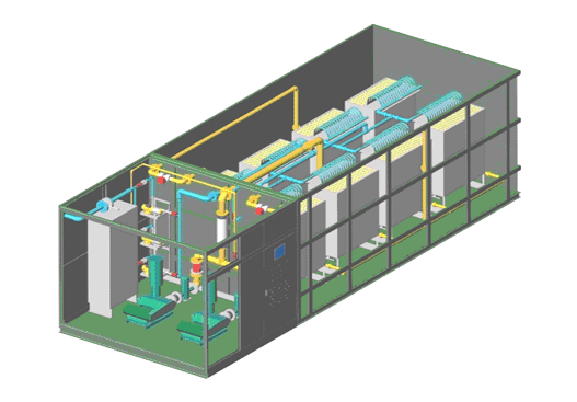 紫外线消毒模块设备,采用模块化设计,模块的大小和剂量随处理量和水质的不同而发生相应的变化,将消毒模块置于消毒水渠内,连同岸上的其他部件构成消毒系统,在渠面上加上活动玻璃钢格板。
