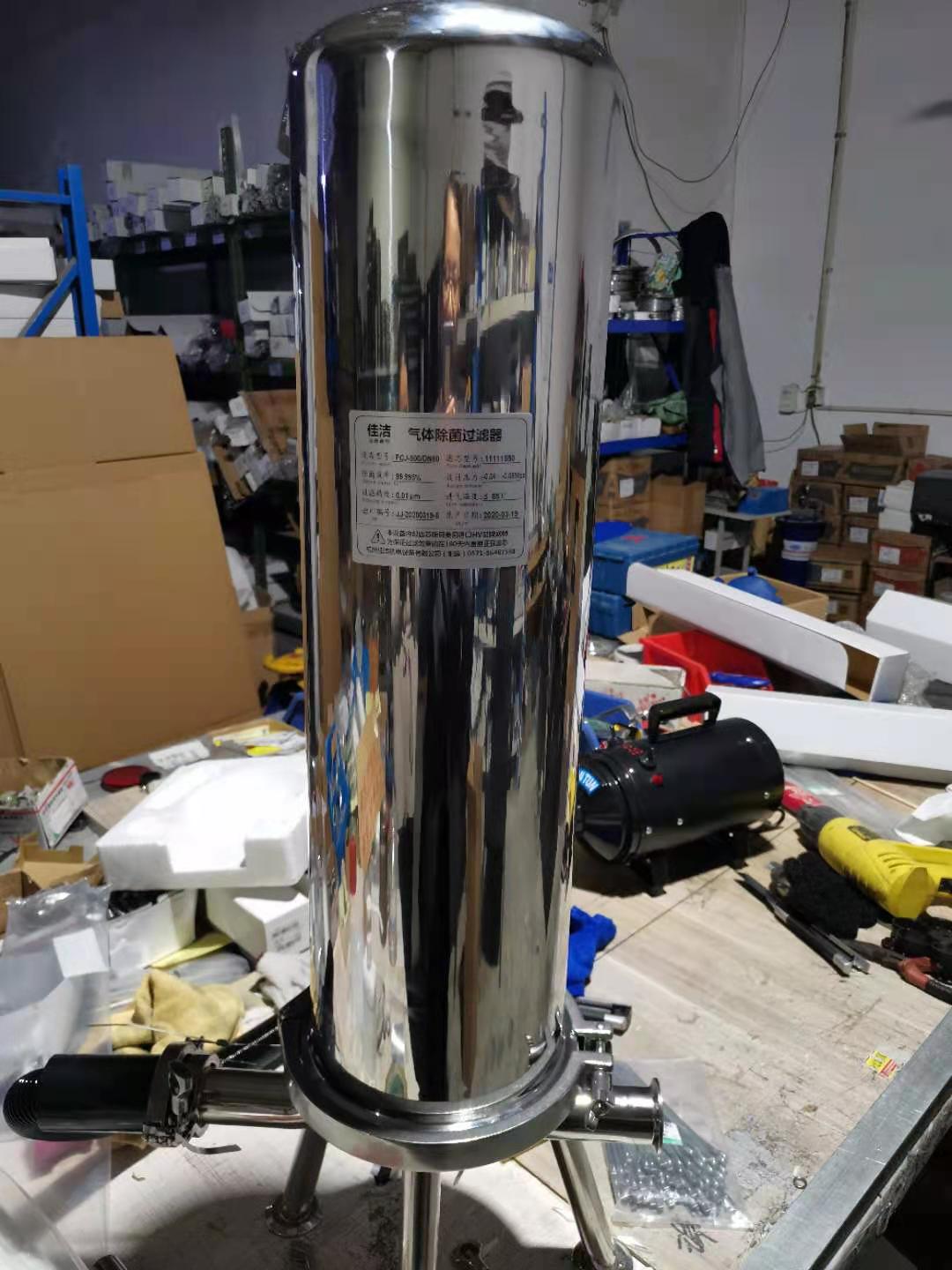 (4)进入除菌过滤器的空气必须先经过至少四级的精密过滤器及干燥机。除油、除水、除尘、除臭,油雾浓度应≤0.003PPM,否则将影响除菌滤芯的寿命,达不到预期的除菌效果。