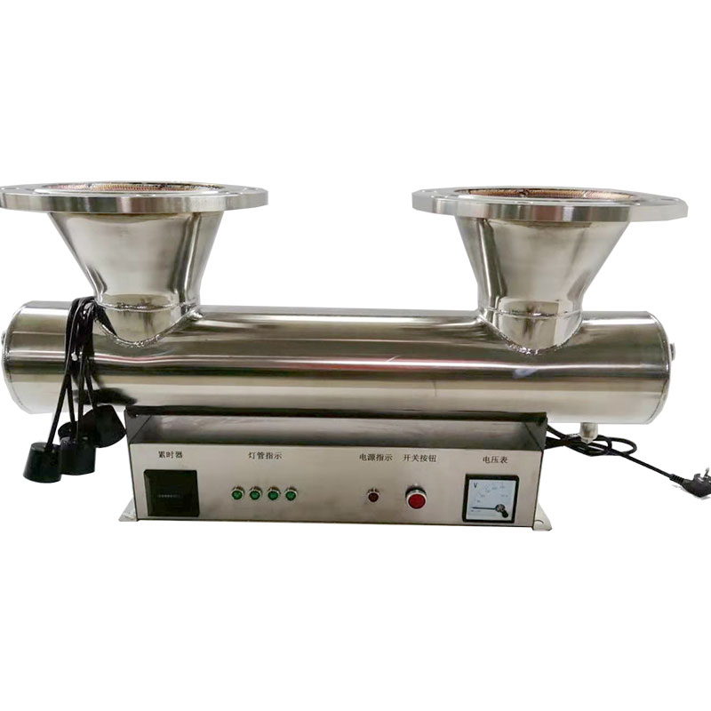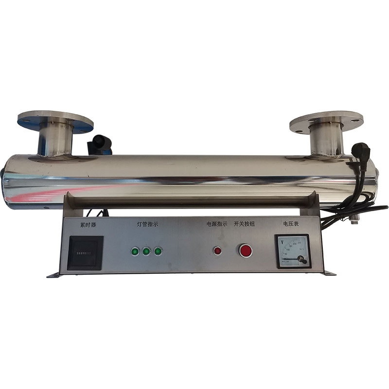 紫外线杀菌的杀菌原理是利用紫外线光子的能量破坏水体中的各种病毒,细菌以及其它致病体的DNA的结构。主要是使DNA中的各种结构键断裂或发生光化学聚合反应,例如使DNA中THYMINE二聚,从而使各种病毒,细菌以及其它致病体失去复制繁殖能力,达到灭菌的效果。本紫外线消毒系统可根据水位的变化,自动关闭处于水位之上的灯管,防止灯管在无水的情况下,长时间点亮而引起不必要的损坏,也为在低水位时,达到相同消毒效果而不必改变单只灯管功率。既节约能源,又能使辐照能量达到所需剂量。当水位上升时,便自动打开相对应的灯管。