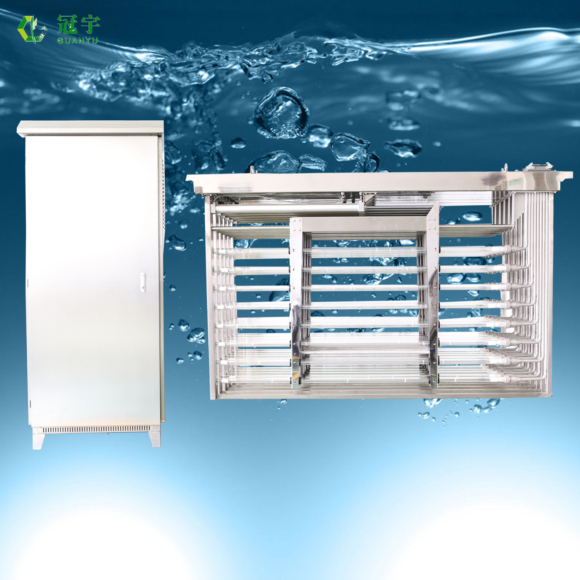 每组模块均配有水位控制系统,根据水位的高低,自动启/停紫外线灯管(液面下灯管工作,液面上灯管停止工作)