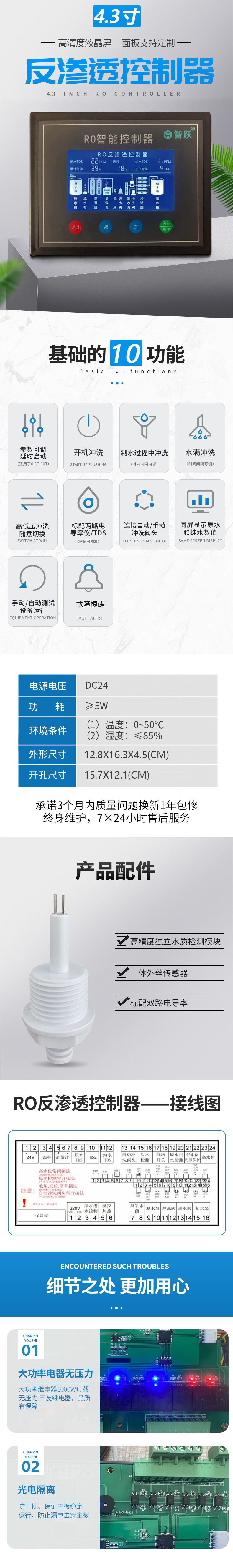 我们控制器的特点:接线简单;安装方便;参数可调;标配两路电导率;手自动一体;性价比高;省时省力;外观上档次,有液晶显示屏,设备运行状态,故障等都有显示;售后服务有保障;支持定制程序、画面、开机动画;选配联网功能;智能控制,设备故障率低。
