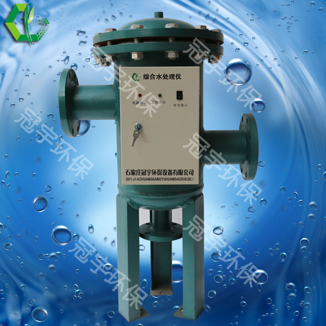 全程综合水处理器是针对各种循环水系统中普遍存在的四大问题:腐蚀、结垢、污泥、微生物繁殖而研制的综合水处理器。由单台设备代替了需要多台设备才能完成的处理过程,从而取代了传统的处理方式。它应用高科技-----差转屏蔽效应而多点阵列组合。巧妙的解决了各种频谱间与电晕效应场间的互相干扰‘制约的重大难题,具有对水质综合优化处理,防垢,防腐,杀菌,灭藻,超净能过滤功能,具有机电一体化的设计,纯物理方式处理。无需化学药剂,阻力低,流量大。而且全程综合水处理器运行费用极低,操作简单,维护方便,是各种水系统之 佳选择。