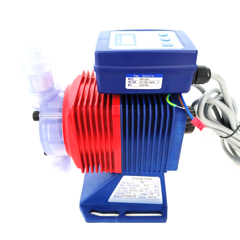 PVC泵头耐腐蚀加药泵。①模块化分仓结构,泵头模块、驱动模块、电路模块相互隔离,互不干扰,散热优良,有效避免泵头漏水烧毁电路板问题。 ②线圈全塑密封,一体成型,内置热保护传感器,避免震动摩擦及高温老化使线圈短路烧毁电路板。