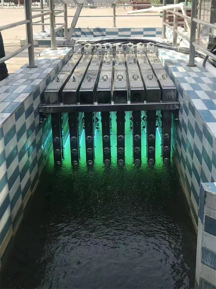 每组模块均配有水位控制系统,根据水位的高低,自动启/停紫外线灯管(液面下灯管工作,液面上灯管停止工作)