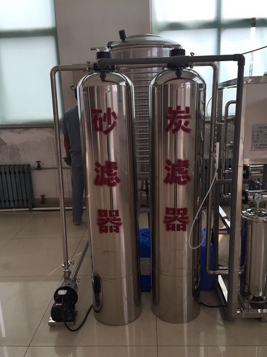 活性炭过滤器是一种较常用的水处理设备, 作为水处理脱盐系统前处理能够吸附前级过滤中无法去除的余氯,可有效保证后级设备使用寿命, 提高出水水质, 防止污染, 特别是防止后级反渗透膜, 离子交换树脂等的游离态余氯中毒污染。 同时还眼附从前级泄漏过来的小分子有机物等污染性物质, 对水中异昧、 胶体及色素、 重金属离子等有较明显的眼附去除作用, 还具有降低COD的作用。 可以进一步降低RO进水的SDI值, 保证 SDl