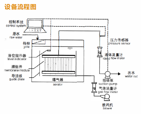 膜——生物反应器(Membrane BioreactorMER)是一种将高效膜分离技术与传统的完全的活性污泥法相结合的新型高效污水处理工艺。 它用膜组件代替传统活性污泥法中的二沉池, 截留生物系统的大量微生物菌群, 促使系统的微生物菌群数量和生物种类的聚增, 提高了污水处理能力和效率, 从而是系统出水水质和溶积负荷都得到了大幅度的提高, 出水可作为中水回用。
