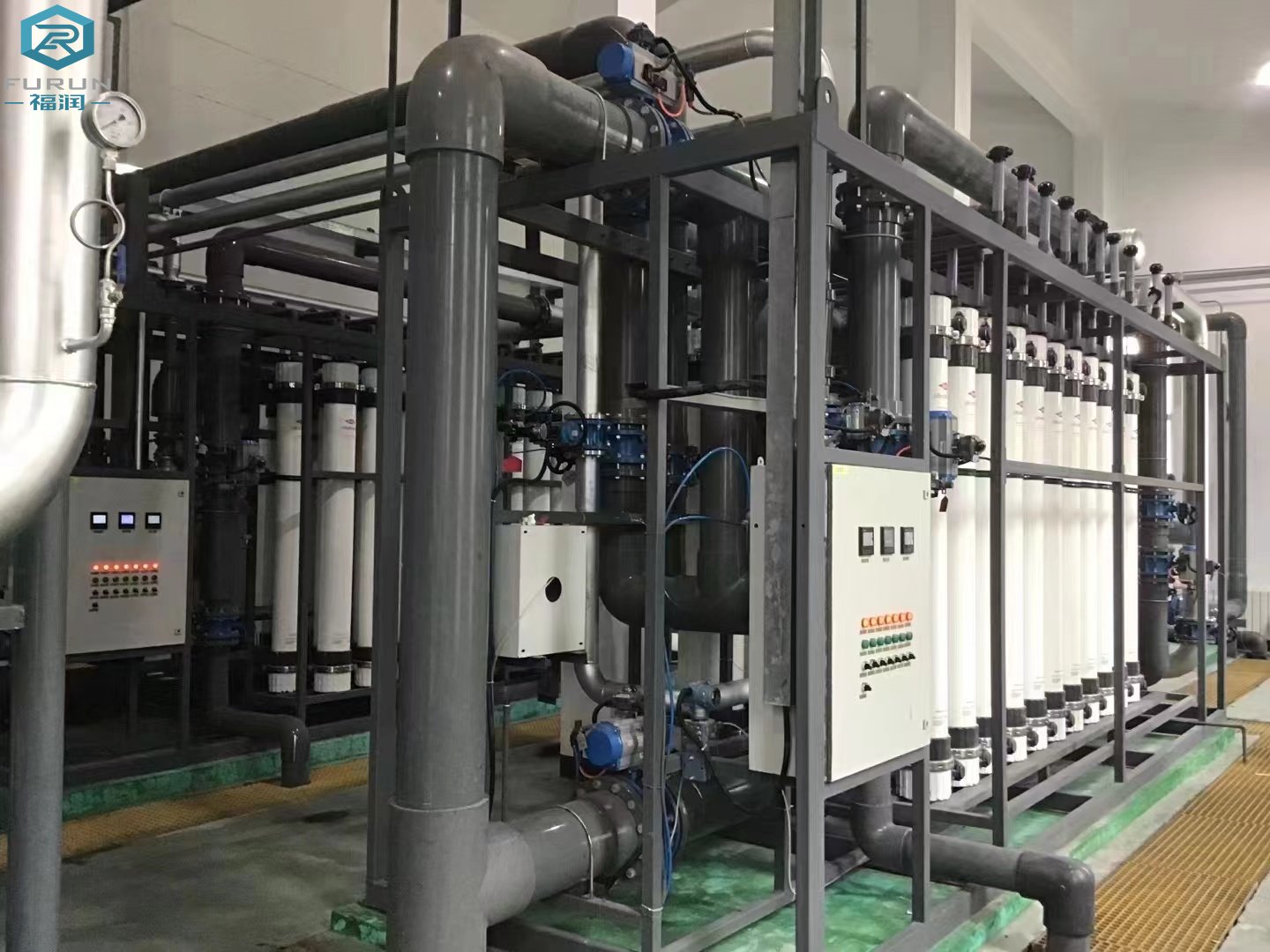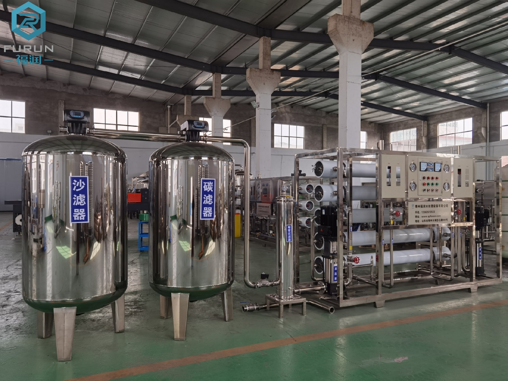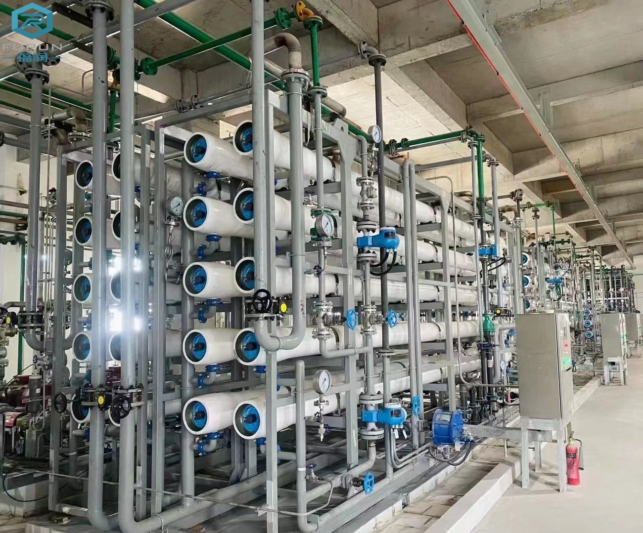反渗透设备应用膜分离技术,能有效地去除水中的带电离子、无机物、胶体微粒、细菌及有机物质等。是高纯水制备、苦咸水脱盐和废水处理工艺中的 设备。广泛用于电子、医药、食品、轻纺、化工、发电等领域。