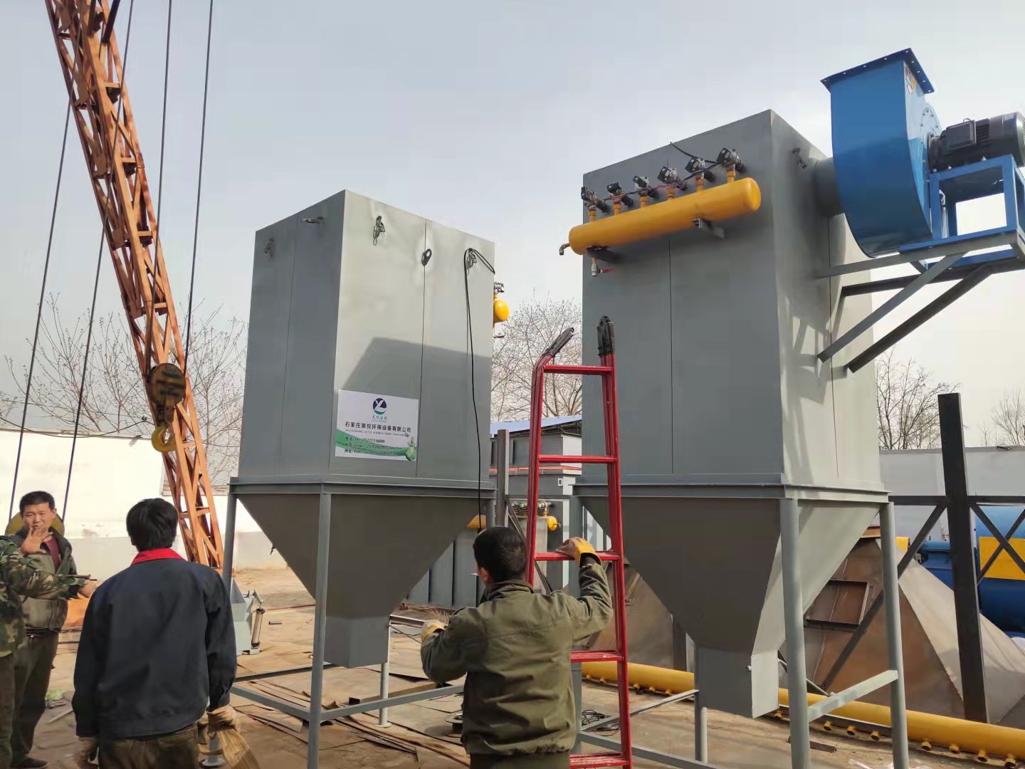 单机布袋除尘器的清灰方式是摇动清灰,其工作原理不同于机械清灰中的振动清灰和摇动清灰,而是通过摇动轴的往复摇动给滤袋一个轴线方面的往复力,除尘滤袋又将这一往复力转换成径向的抖动运动,其抖动的幅度和频率取决于布袋的长度、摇动轴半径和频率等参数。当这些参数配合较好时,其抖动力具有大值,足以清理滤料上的粉尘。显然在过滤状态时,由于滤袋受气流的压力而呈柱状,摇动轴的往复运动不能转换成滤袋的径向抖动,这是它须停机清灰的道理之一。