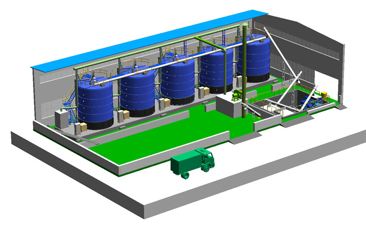 将脱水后的物料可由装载机输送至发酵设备提升料斗内,通过提升料斗将物料投入发酵设备仓体中。(可根据项目总体设计采用皮带机或螺旋输送机直接上料)