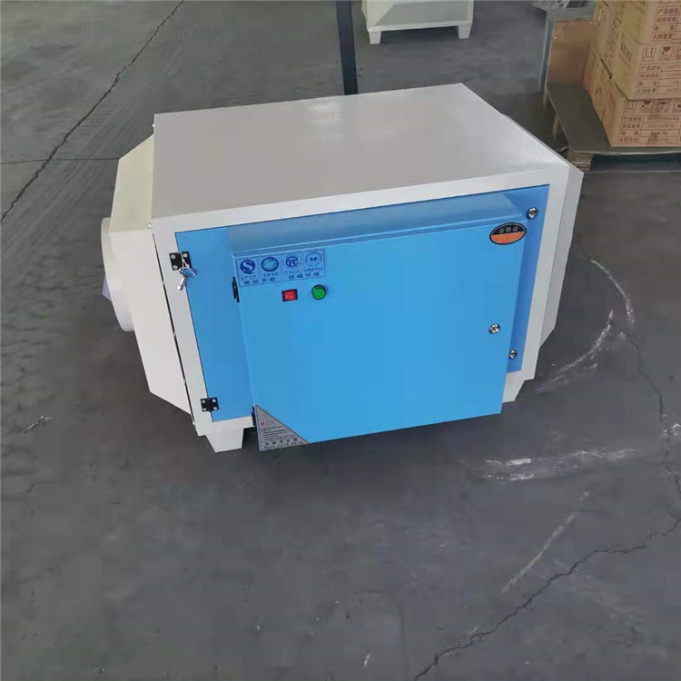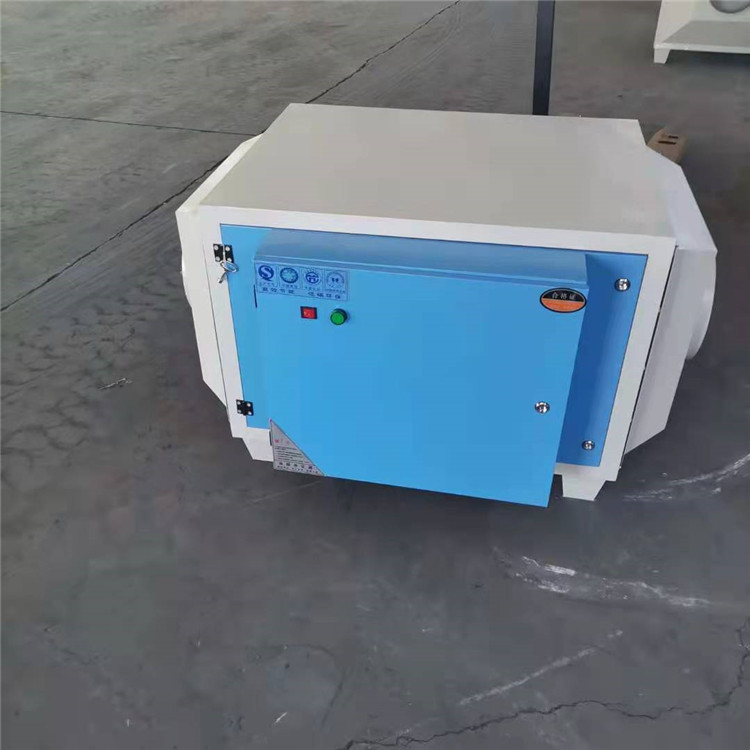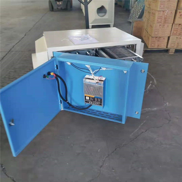 低空油烟净化器商用6000风量饭店厨房餐饮烧烤净化器 油烟由风机吸入静电式油烟净化器,其中部分较大的油雾滴.油污颗粒在均流板上由于机械碰撞、阻流而被捕集。