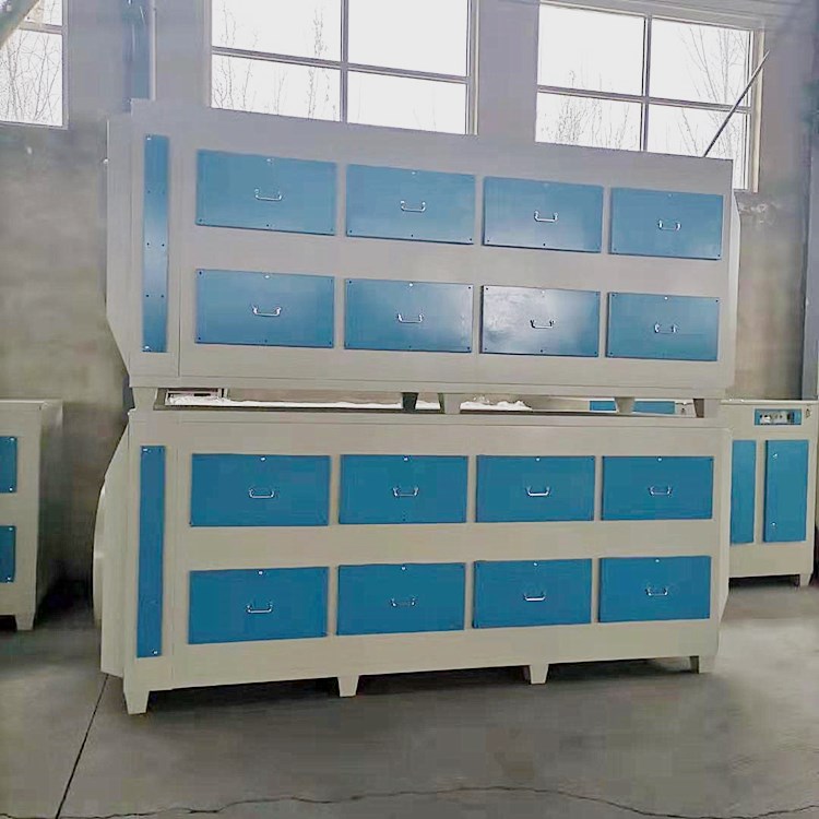 活性炭吸附箱设备VOCS抽屉式活性炭箱环保箱 车间含有气体或颗粒物经集气罩收集,管道输送气体进入炭塔,气体进入塔内时,风速顺间降下,气体内含的较大颗粒杂物便自然沉降入塔底部