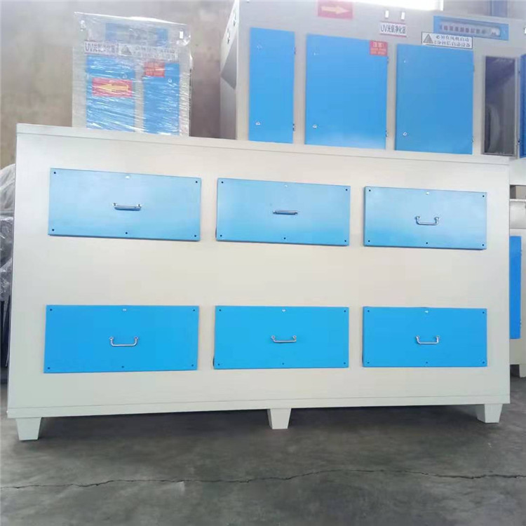 (1)均流段:FQ-GQ系列废气活性炭吸附净化器设计的风口,废气废气由进风口导入,经气流扩散,在均流段内废气被平均分布,使废气废气均匀进入预处理段。