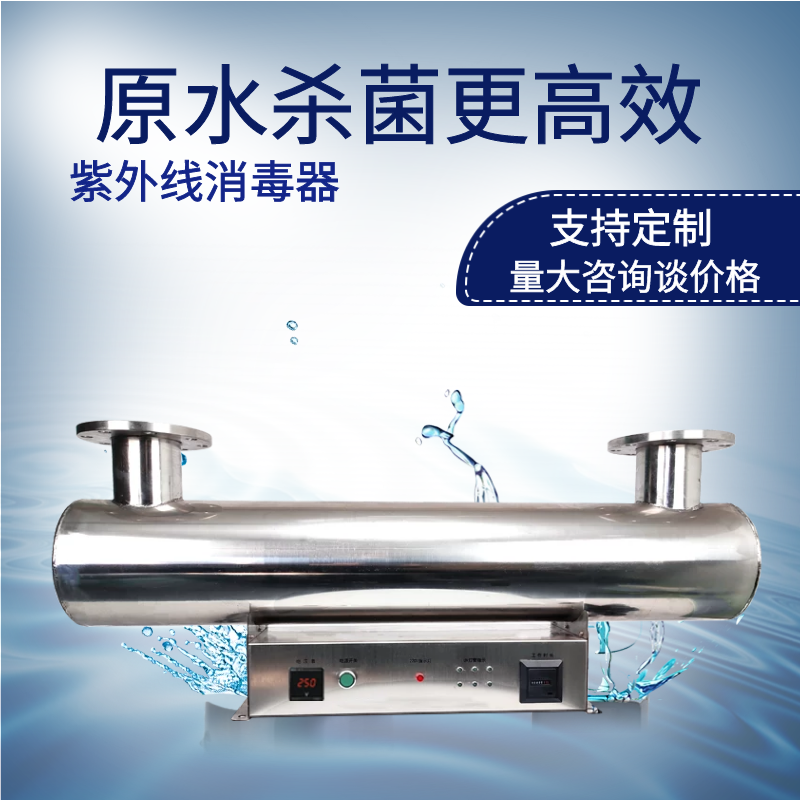 管道式紫外线消毒器简介:利用紫外线特性杀灭水中酵母、病毒、细菌、霉菌及藻类生物,不需加热或冷却、无需添加任何化学药品,即能达到消毒效果,广泛应用于电子工业超纯水系统、饮料、医药品、化妆品、化学等工业原料水、饮用纯净水、山泉水、矿泉水、洗净水系统作流水杀菌用,对 饭店、机关团体、公共场所等供水系统