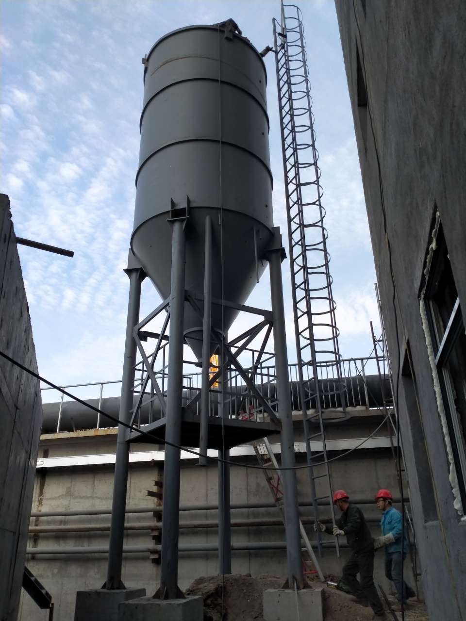 | 2 | 料仓进碳酸钠粉料操作: 1)将罐车进料管与上料管路进行对接。 2)在碳酸钠投加控制系统界面下按下“仓顶除尘器开启”,开启仓顶除尘器开始进料。 3)密切观察控制柜料位计指示状态。当物料到达高料位后(高料位变绿灯并发出报警声音)停止进料(操作人员不得离开现场,密切观察高料位情况,控制柜高料位变绿灯发出报警声音后 立即 停止进料,防止物料打冒,造成设备损坏及物料外泄),报警声音可手动关闭。 4)停止进料后延时约30秒-1分钟即可在控制面板上按下“仓顶除尘器停止”关闭除尘器进料结束。 5)当料仓中料位变红灯提示没料时,根据实际用料速度情况,计划好进料时间。 |