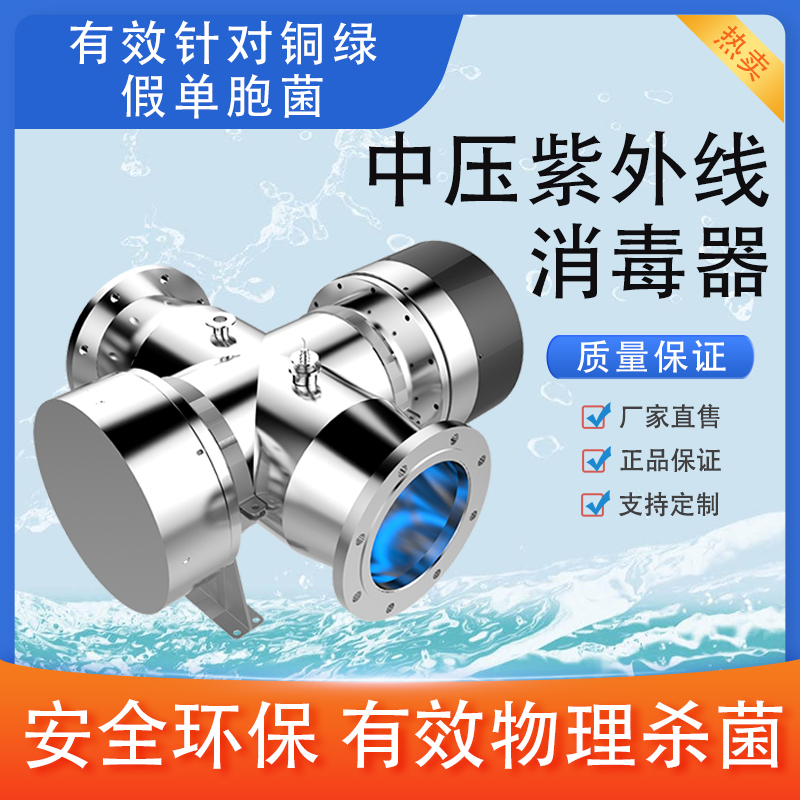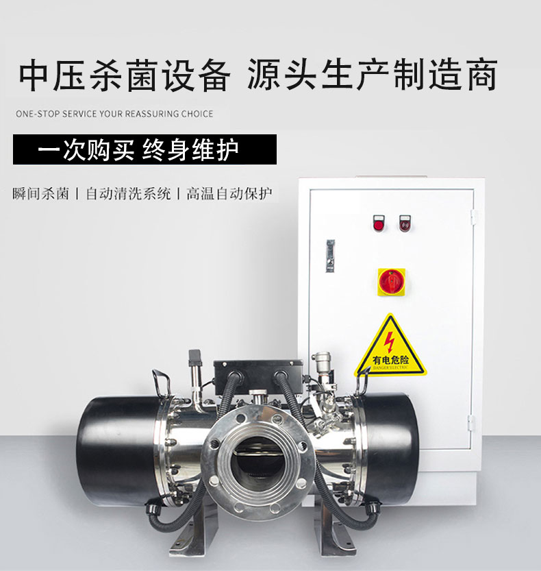 中压紫外线消毒器能 保证杀菌效果和出水水质,是一种持久的, 有效的杀菌技术,没有复活反应,没有菌群反弹现象,确保完全的消毒效果和水质的安全。