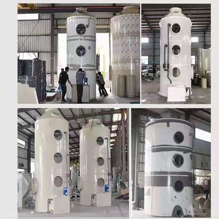 可定制风量材质喷淋塔 废气处理空气净化器 PP环保设备 酸雾废气由风管引入净化塔,经过填料层,废气与氢氧化钠吸收液进行气液两相充分接触吸收中和反应,酸雾废气经过净化后,再经除雾板脱水除雾后由风机排入大气。