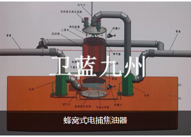 。浸渍罐烟气由下端侧面进入, 净化后的洁净气体由上端顶部由风机排出, 除尘器底部留有人孔维修方便。下端进气口设有2 层多孔板型气流分布板, 使气体在电场中均匀分布, 中部为高4-5m 的高压静电场。 其原理即在金属导线与金属管壁(沉淀极板)间施加高压直流电,使阴阳极之间形成电晕区。当含焦油雾滴等杂质的气体通过该电场时,吸附了负离子和电子杂质在电场库伦力的作用下,移动到沉淀极后释放出所带电荷,并吸附于沉淀极上,当吸附于沉淀极上的杂质量增加到大于其附着力时,会自动向下流并从电捕焦油器底部排出,从而达到净化气体的目的。蜂窝式电捕焦油器与其他焦油器相比,由于蜂窝式电捕焦油器具有结构紧凑合理、没有电场空穴,具有筒径小,占地少,有效截面(气净化工作面)大,气体处理量大成本低,电耗小,收焦油量大且油质优良,净化效率高,处理后各种污染物可达标排放的优点。达到的技术指标,可明显改善操作环境。