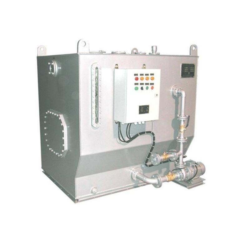 船上的原污水或污水处理装置处理后的固体残渣由进水管进入贮存柜,在柜内液体达到40%液位时,粉碎泵自动起动,使污水或固体残渣反复循环粉碎;在柜内液体达到80%时,自动发出报警信号警示船员。当污水或固体残渣粉碎到一定程度后,可将污水通过主甲板以上的国际排放接头送岸上接收设施或在非管制海域直接排放到舷外,实际内河生活污水零排放。本设备设有粉碎排放低位停止和高位报警功能,满足船员要求。