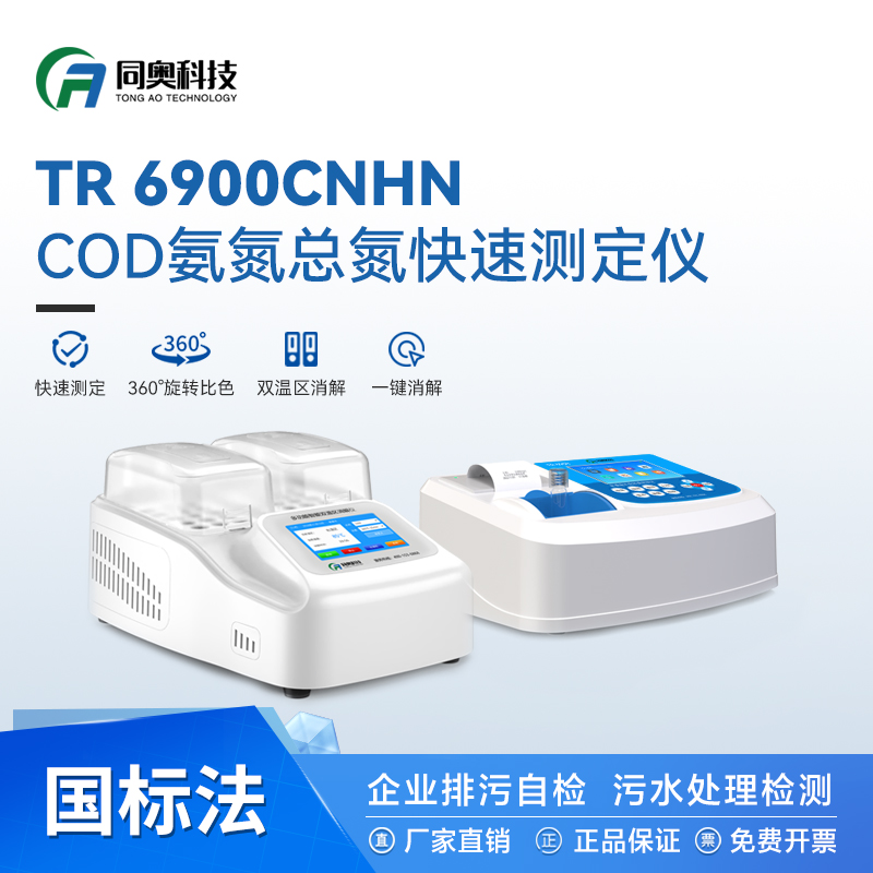 同奥科技 COD测定仪总氮分析仪 TR-6900CNHN仪器可快速测定水中COD、氨氮、总氮值,集成了同奥水质分析领域成熟技术,使整个分析系统更加完善,操作更加简单、快速,检测结果更加稳定可靠。仪器显示界面采用大屏液晶屏显示,按键操作,数据直读,操作简单省时;检测范围广,可拓展数十种检测参数,根据需求定制,达到资源利用优化,智能操作程序,可选择标准测量或连续测量模式,在快速性和准确性间自由选择,引导用户轻松完成操作。同奥科技 COD测定仪总氮分析仪 TR-6900CNHN广泛应用于应急监测、工业废水、生活污水、污水处理、医药化工、食品、饮品、纺织印染、电镀、造纸、石油冶金、河流治理、科研单位、院校等领域。