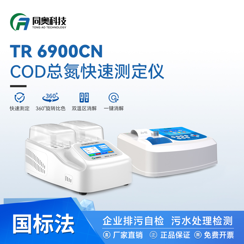 同奥科技 COD测定仪总氮分析仪TR-6900CN仪器可快速测定水中COD、总氮值,集成了同奥水质分析领域成熟技术,使整个分析系统更加完善,操作更加简单、快速,检测结果更加稳定可靠。仪器显示界面采用大屏液晶屏显示,按键操作,数据直读,操作简单省时;检测范围广,可拓展数十种检测参数,根据需求定制,达到资源利用优化,智能操作程序,可选择标准测量或连续测量模式,在快速性和准确性间自由选择,引导用户轻松完成操作。同奥科技 COD测定仪总氮分析仪TR-6900CN广泛应用于应急监测、工业废水、生活污水、污水处理、医药化工、食品、饮品、纺织印染、电镀、造纸、石油冶金、河流治理、科研单位、院校等领域。