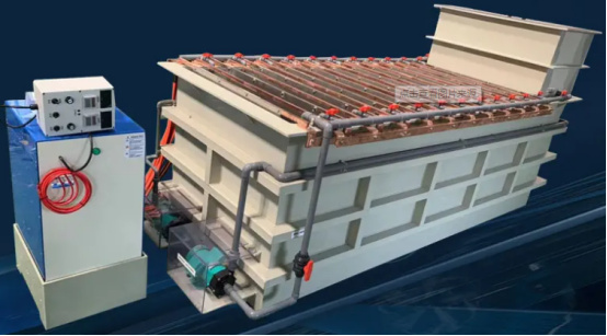 结构:包括多个电解单元,电解单元均包括电解缸、排气组件和多个隔离部件;