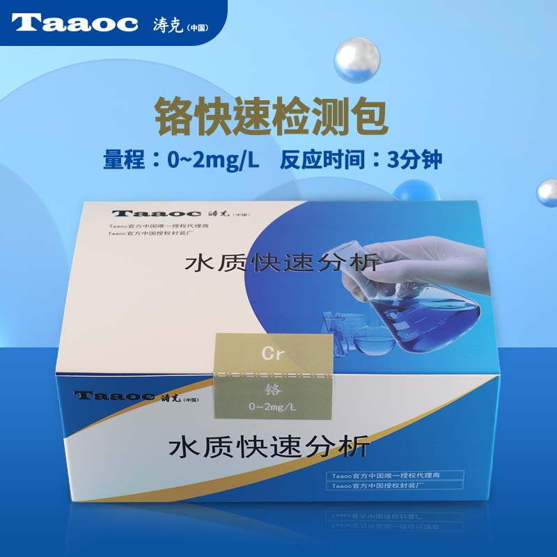 涛克 水质快速检测包总铬快速测试包总铬测试包0-2mg/l可快速测定水中的总铬含量,小巧、便捷,便于携带,无论您是在生产现场进行快速测定,还是在户外进行快速排查,测试包均能满足您的水质检测使用需求。测试包集成了水质分析领域成熟技术,整个操作流程简单、快速,检测结果稳定可靠。