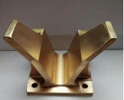 阴极导电铜座是一种电镀阴极导电装置,主要作用是电镀槽边起支撑和导电作用。按承受电流量大小,一般分为铜V座和水冷铜座。铜V座主要用在一些电流比较小的电镀线上,如果电流稍微大点可以选择电镀紫铜V型座,水冷铜座主要用在电流达到3000A以上的大型电镀自动生产线上,因为这种阴极导电装置在工作的时候一直在靠水循环不断的降温,所以正常温度都可以控制在40℃左右。