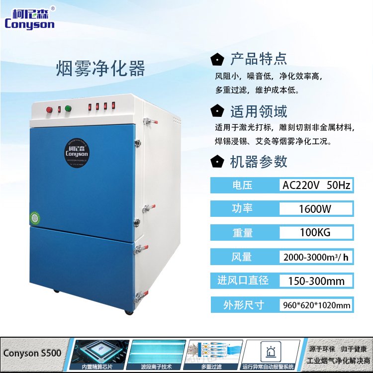 柯尼森烟尘净化器厂家,专业净化各类烟尘废气,拥有一套自主的研发技术和成熟的案例处理经验,产品广泛应用于激光、电子仪表、航天航空、医疗美容等领域,详情请咨询18824280093(微信同号)