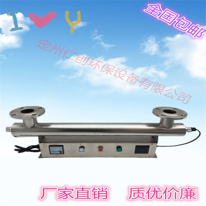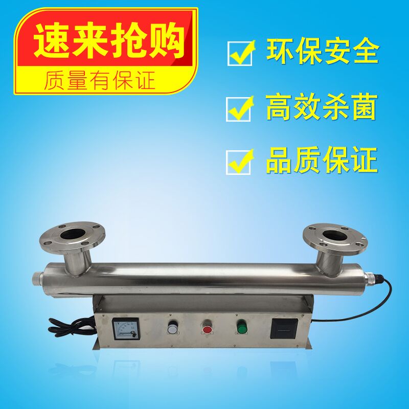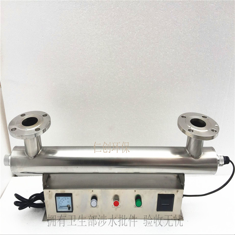 我公司生产的RC系列紫外线消毒器装置,采用 的高强度无臭紫外线杀菌灯,简体内壁经过特殊处理的食品级304不锈钢,使经过预处理的水流过筒体时受到波长253.7nm紫外线足够量的照射,具有良好的杀菌效果