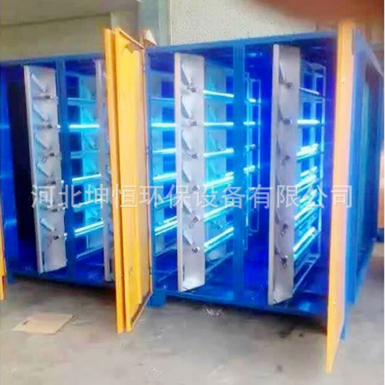 rnUV光解废气处理设备,适合在常温下将废气臭气等有毒有害有味成份,完全氧化净化成无毒无害味的低分子成份,适合处理高浓度(可用预处理的方式让浓度均匀通过)、气量大(设备可组合式处理)、分子结构稳定性强的有毒有害气体