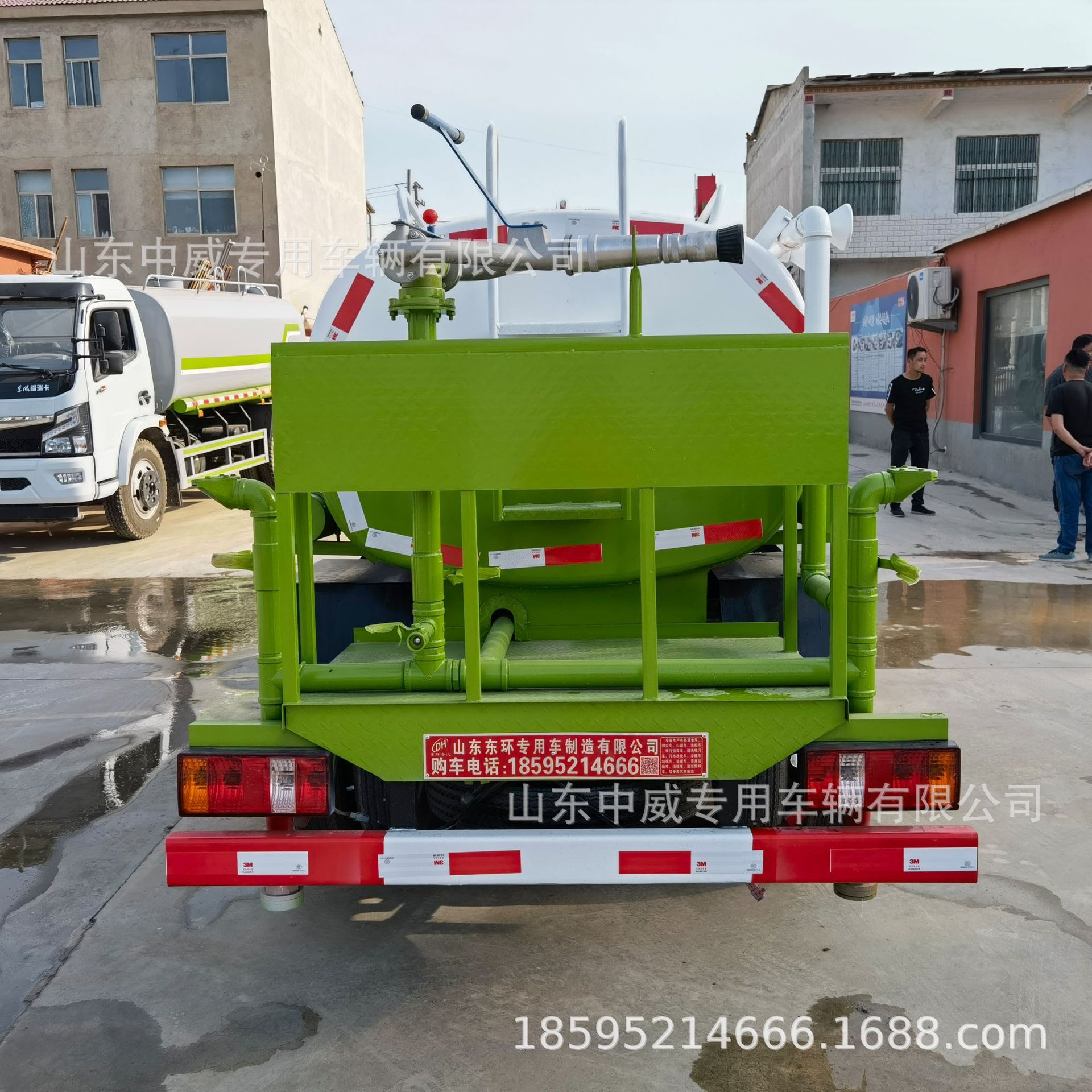 rn上装配置:罐体钢板为4.75mm碳钢Q235材质,罐内隔板具有防波作用,以减轻汽车行驶时罐体液体冲击,罐体及整车外形尺寸按照公告。带大功率专用洒水泵,泵可自吸自排,整车前冲、后洒、侧喷、带65消防接口,后平台带绿化洒水炮,洒水炮可旋转,可连续调成直冲状、大雨、小雨、毛毛雨;前封头带水位计,后平台主管路带1寸浇花接口,后爬梯。平台后部带小安全告知牌:“随时停车,注意安全”,带两根水管及阴阳端。罐体颜色:上白/下蓝,银灰/银蓝,罐体两侧喷“洒水车、绿化喷洒车”字样,贴反光标示。洒水车可加装前冲后洒气动阀驾驶室控制、可加装雾炮机组发电机组喷雾降尘装置、车头可加装推雪雪铲、雪滚装置街道、公路除雪等。