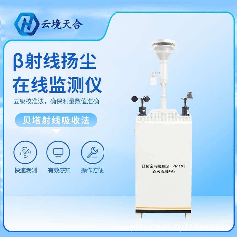 rn采用的是贝塔射线吸收法的工作原理,将C-14作为发射源,其发射恒定的高能量电子,样品空气通过切割器以恒定的流量经过进样管,颗粒物截留在滤膜上。β射线通过滤膜时,能量发生衰减,通过对衰减量的测定计算出颗粒物的质量,根据采样流量、采样时间和滤膜面积来计算实际状态下环境空气中颗粒物的浓度。该设备适用于建筑工地、道路施工、工厂厂界等颗粒物的在线监测。