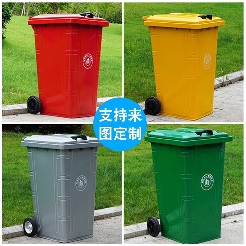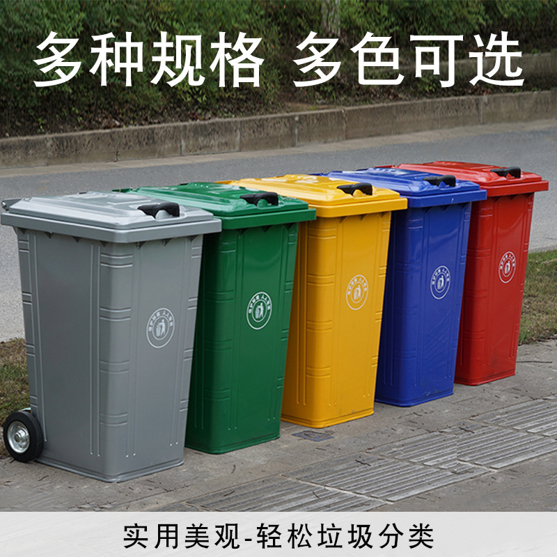户外环卫垃圾桶240升铁质垃圾桶农村商用大号挂车铁皮桶带轮带盖
