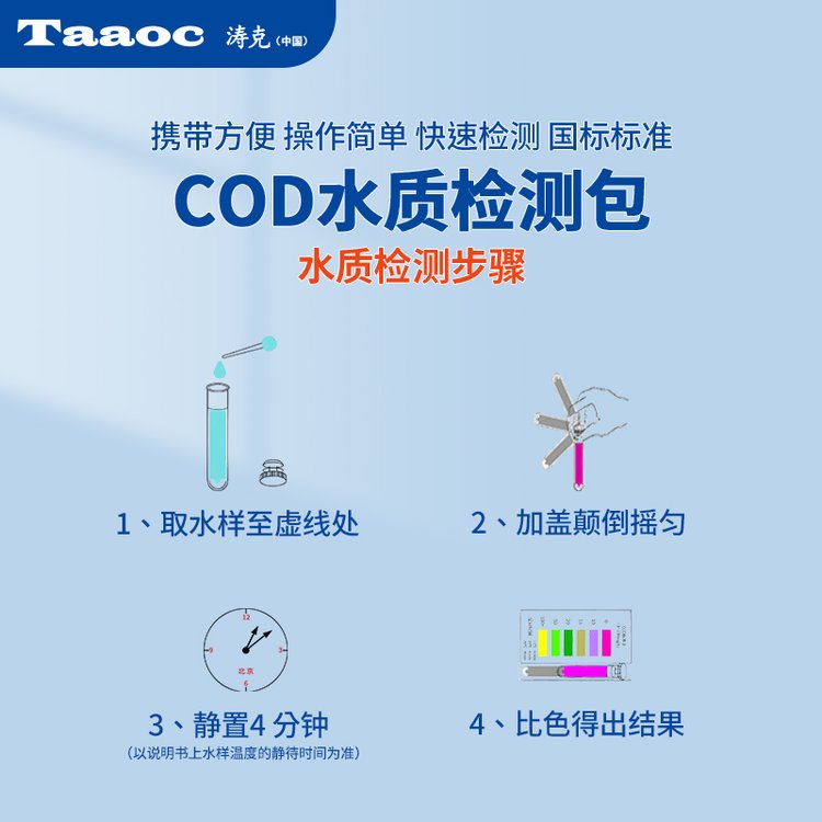 涛克 水质快速检测包总砷快速测试包0-2mg/l总砷测试包可快速测定水中的总砷含量,小巧、便捷,便于携带,无论您是在生产现场进行快速测定,还是在户外进行快速排查,测试包均能满足您的水质检测使用需求。涛克 水质快速检测包总砷快速测试包0-2mg/l总砷测试包集成了水质分析领域成熟技术,整个操作流程简单、快速,检测结果稳定可靠。