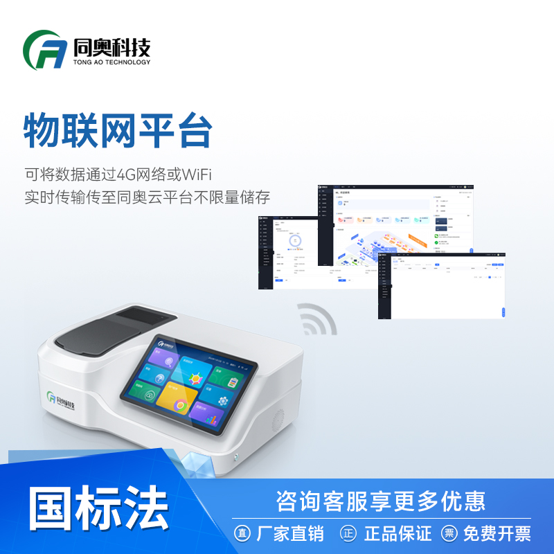 具有智能语音系统及360°旋转比色技术的物联网水质测定仪,采用10英寸平板电脑,搭载自主开发的TOS系统,360°旋转比色技术,海量数据经验,让结果更加稳定、可靠。导航式操作引导配合“小奥”智能语音系统,协助用户快速完成测定。物联网平台,可将数据上传至同奥云平台不限量 保存,方便用户进行水质状况