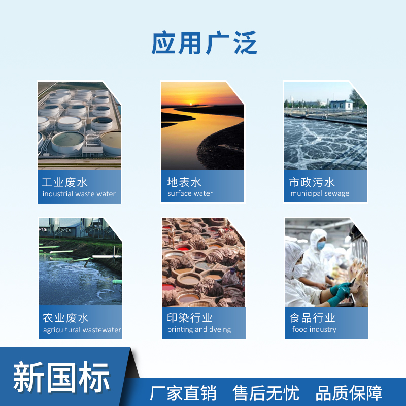 | 应用领域: | 地表水(Ⅳ、Ⅴ类)在线监测,如城市内河涌、污染源入河口、河流入海口等; 污水处理工艺过程在线监控,如电镀废水处理工艺; 工业废水在线监测,如电镀、线路板、医院、食品、造纸、印染、煤矿、金属冶炼、养殖畜牧业等行业; 生活污水在线监测,如污水处理厂进口及排放口; |