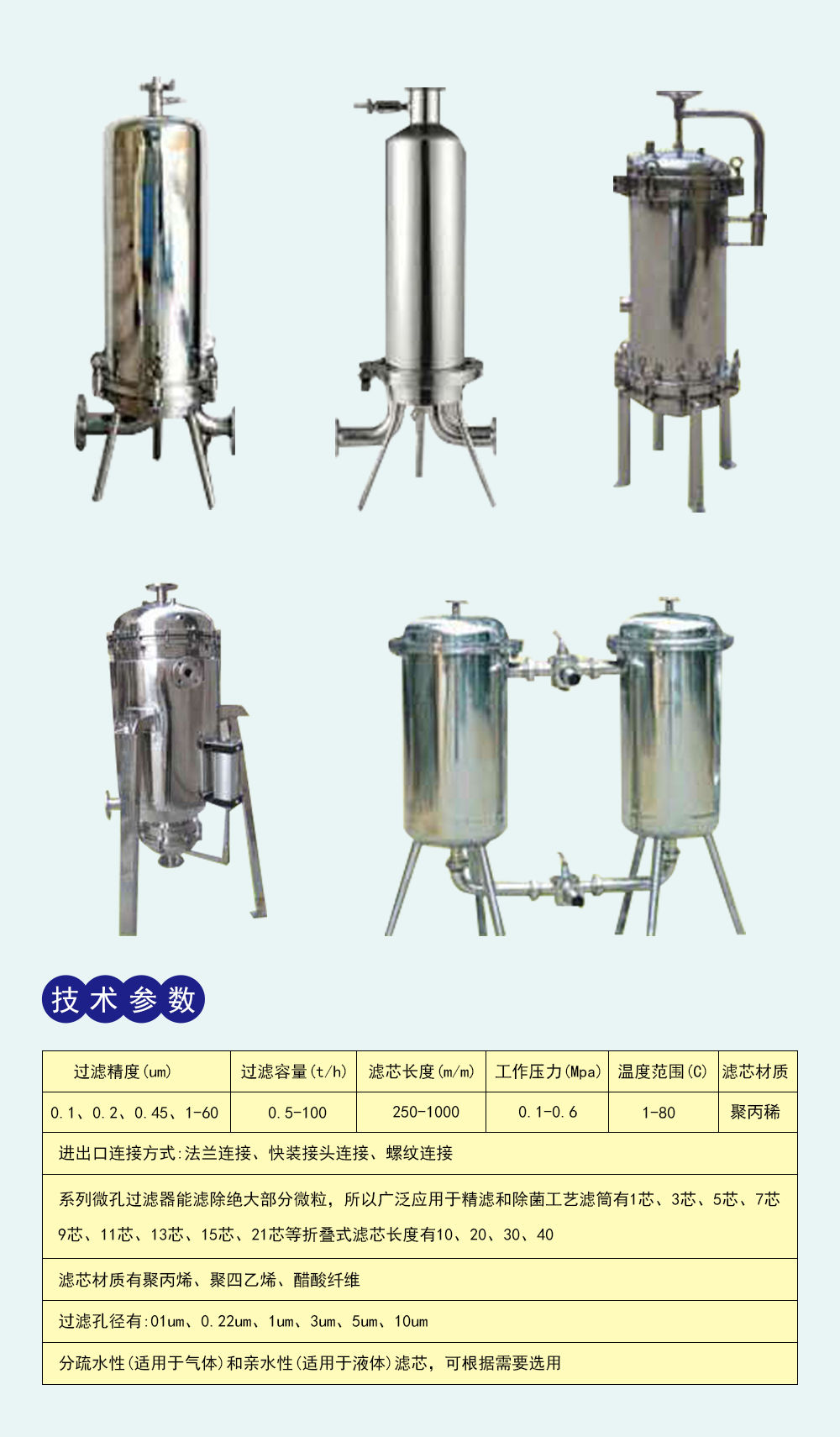 滤除液体 气体的0.1um以上的细菌和微粒,过滤精度高 过滤速度快 吸附少 无介质脱落 耐酸碱腐蚀 操作方便。