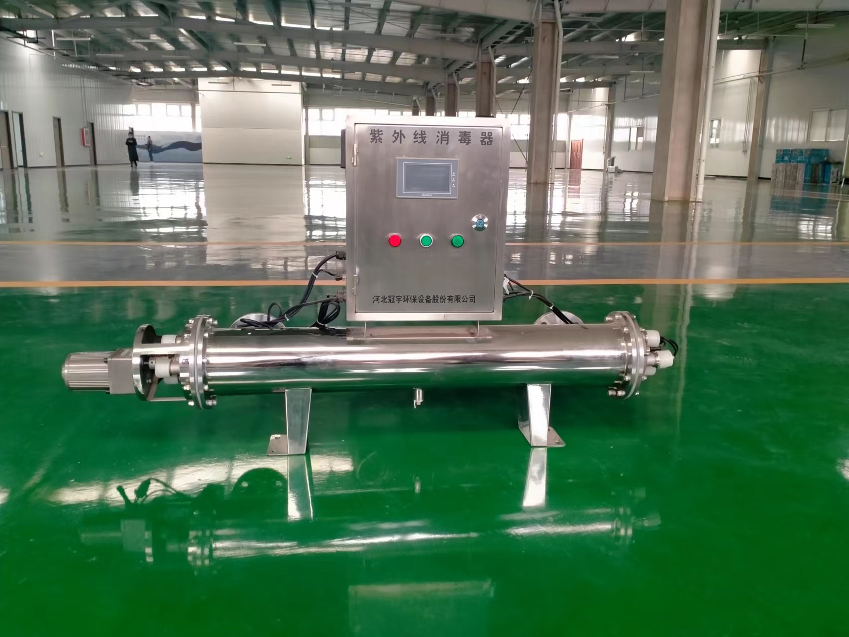 冠宇紫外线消毒器集光学、微生物学、机械、化学、电子、流体力学等综合科学为一体。采用进口及优质国产的高效率、高强度和长寿命的UV-C紫外光发生装置所产生的UV-C紫外光照射流水。当水中的细菌、病毒等受到足剂量的UV-C紫外光(波长253.7nm)照射后。其细胞DNA及细胞结构被破坏,细胞再生无法进行,