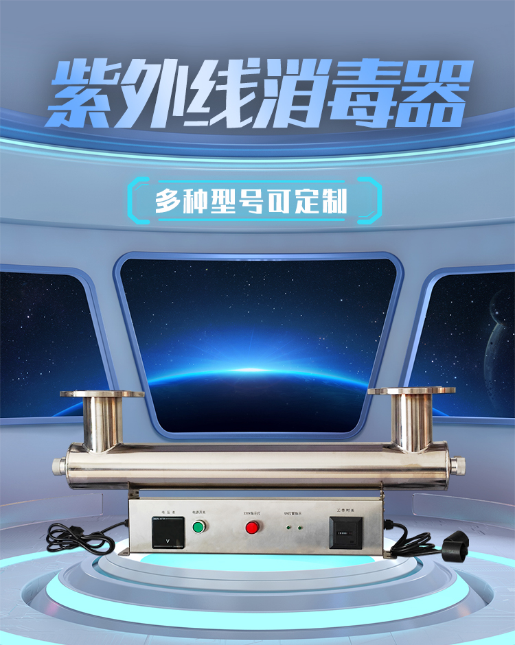 管式紫外线消毒器主要是利用波长在225纳米—275纳米的紫外线对微生物进行杀菌作用从而净化水质的设备,该设备一般选用不锈钢材质制造,当水流经过管式紫外线消毒器时,紫外线灯照射,从而将水中的细菌、病毒等微生物进行处理,处理效果可以达到99.99%。 紫外线消毒器二、管式紫外线消毒器特点1、紫外线消毒器
