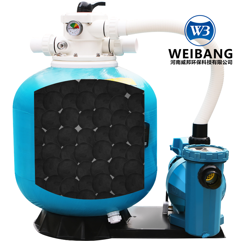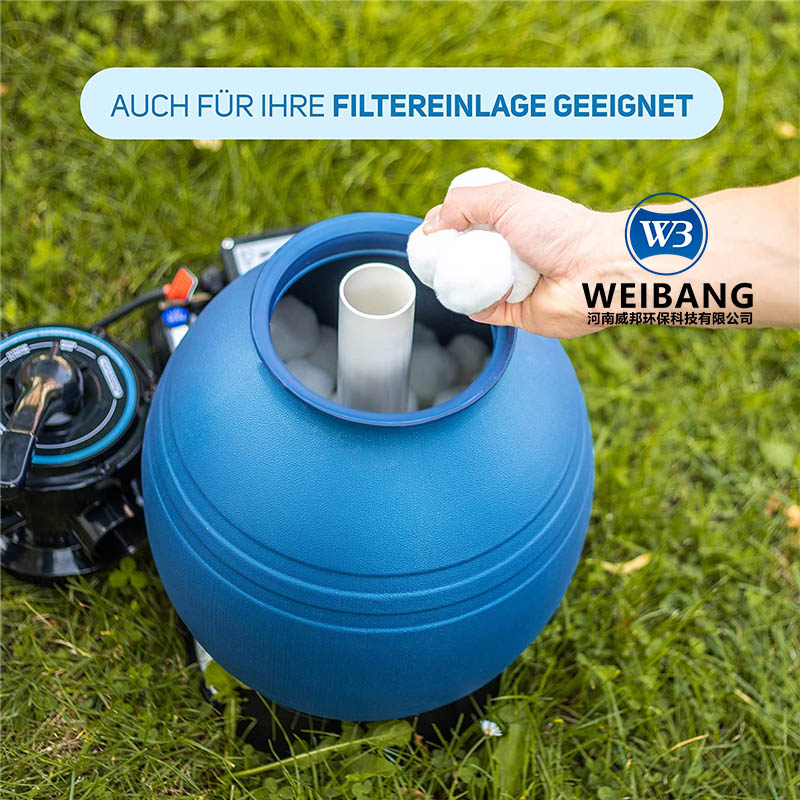 纤维球是由纤维丝扎结而成的球形滤料,它与传统的钢性滤料相比,具有弹性效果好,不上浮水面,空隙大,工作周期长,水头损失小等优点。在过滤过程中,滤层空隙沿水流方向逐渐变小,比较符合理想滤料由上大下小的孔隙率分布,从而形成了滤速快,截污容量大,过滤效果好,可再生反复使用,不必全部更换,省时省力等优点。